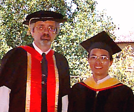 Liang-Biao Ouyang and his family, with Roland Horne, with adviser Khalid Aziz, and with family and Khalid Aziz
