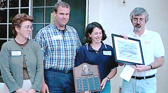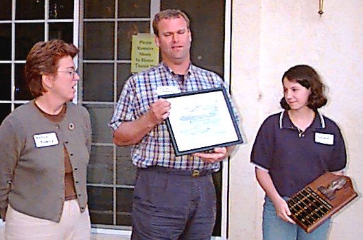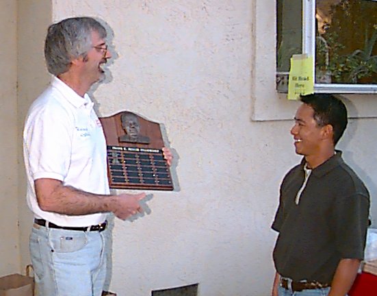 Roland Horne displays the Miller Fellowship plaque.