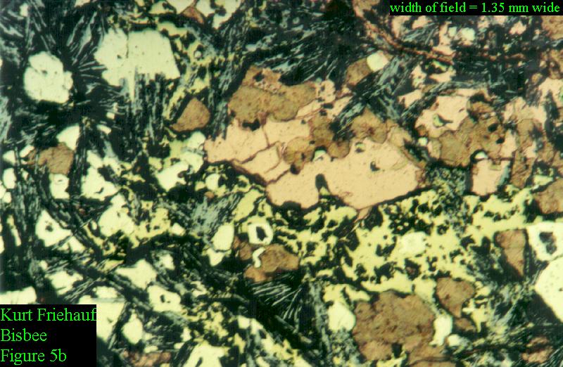click here for 72.2 kb image(b.) Combination transmitted and reflected plane-polarized light photomicrograph