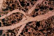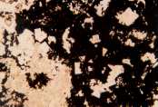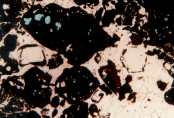 filling cubic pyrite moulds. Transmitted, plane-polarized light.