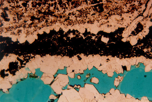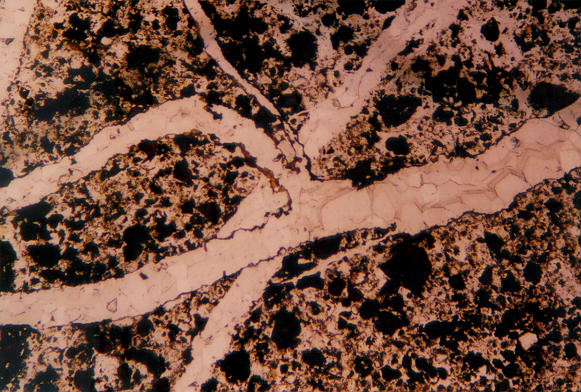 vein cutting jasperoid (from wall to center of veinlet, i.e., top to bottom):